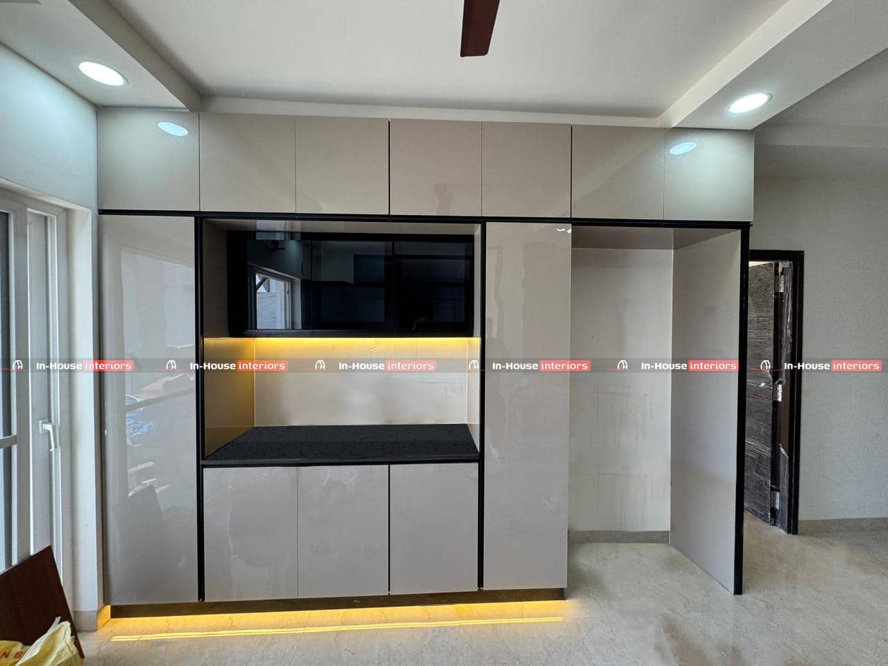 We specialize in designing and installing modular crockery units, wall-mounted shelves, closed storage cabinets, and glass-front display units that elevate the elegance of your dining area while providing practical storage solutions.