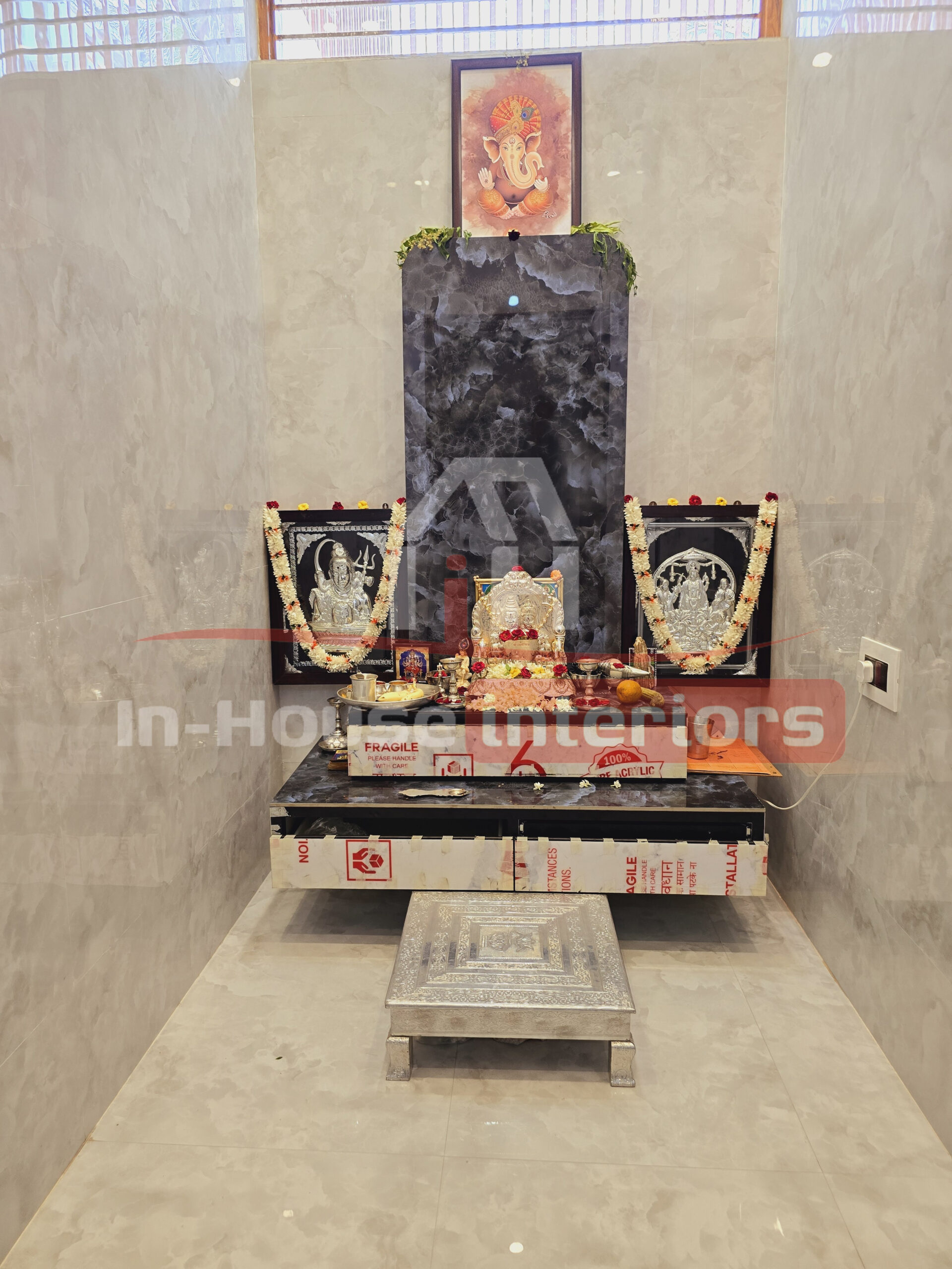 We design pooja units that fit seamlessly into your interiors—whether it’s a compact wall-mounted unit for apartments or a grand traditional setup for spacious homes. Each design is customized with intricate detailing, premium finishes, and functional storage for idols, lamps, and prayer essentials.